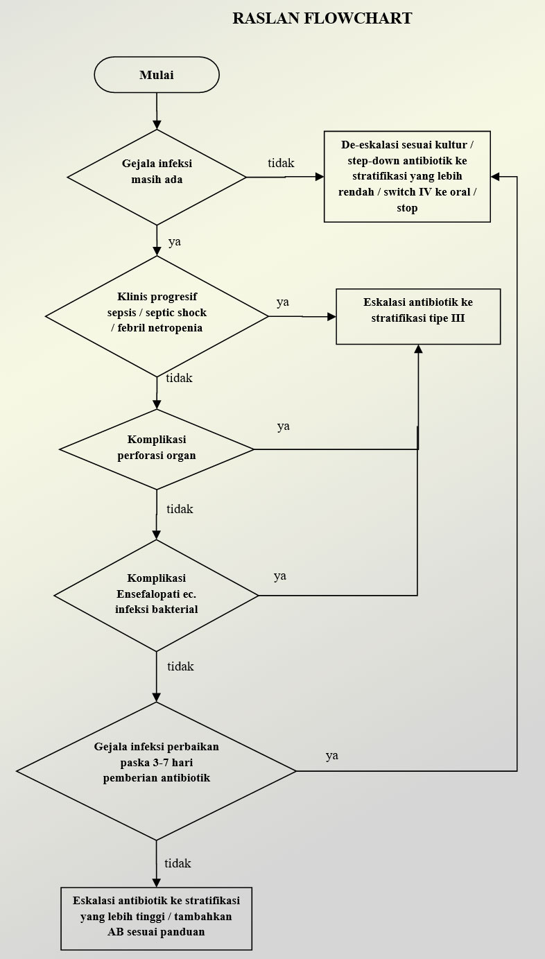 RASLAN-FLOWCHART admin 03 Sep (0) Facebook Twitter Pinterest Related Posts Penelitian dan MakalahPola Kepekaan dan Resistensi Mikroorganisme Aerob pada Infeksi Jaringan Lunak Komplikata dengan Berbagai Manifestasi Klinisnya di Tiga IGD Rumah Sakit di Jakarta (Ronald Irwanto, Suhendro Khie Chen, Yeva Rosana) admin 2018-Jun-17 KonsepMatriks RASPRO SEKATA Gyssens admin 2018-Aug-31 KegiatanPERDALIN-PERSI ARTS 8 Workshop 2019: RASPRO Method admin 2020-Jan-14 KegiatanAntimicrobial Stewardship – Internal Workshop” RS Otak M. Hatta Bukit Tinggi 26 Januari 2026 admin 2026-Feb-05 Penelitian dan MakalahKorelasi antara kadar procalcitonin dengan serum transaminase pada pasien sepsis: sebuah studi pendahuluan admin 2019-Aug-16 Penelitian dan MakalahTrend changing to the access category antibiotic usage after digital antimicrobial stewardship tool E-RASPRO 9 months implementation in an Indonesian hospital admin 2025-Nov-16 Leave a Reply Cancel replyYour email address will not be published. Required fields are marked * Save my name, email, and website in this browser for the next time I comment.